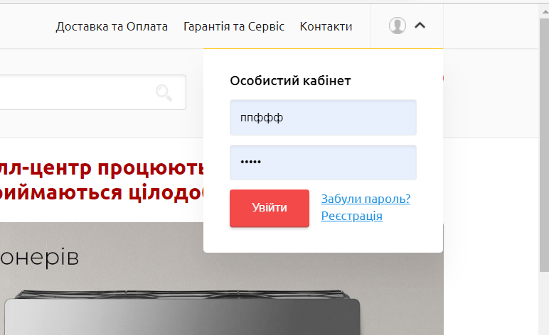 3) В текстових полях логін та пароль ввести значення "ппффф"
