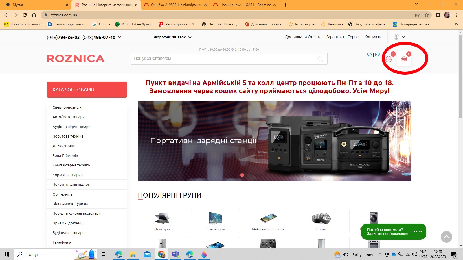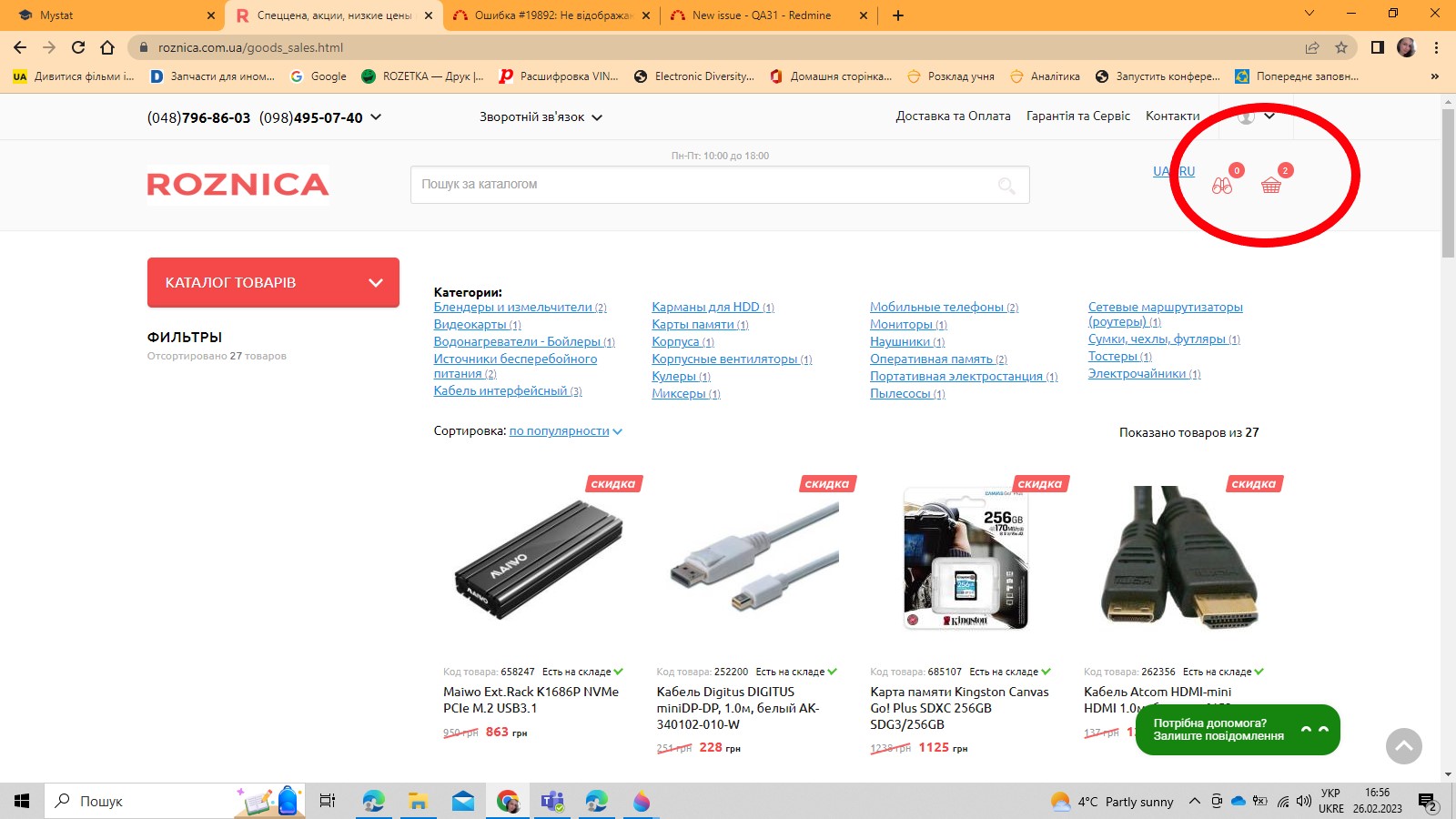 Очікуваний результат: З головної сторінки повинна відображатися кількість товару в "Корзині";