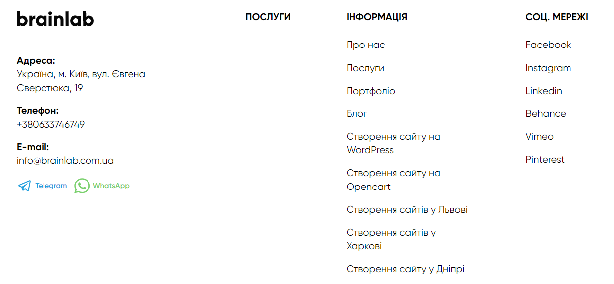 Наявність інформації про послуги