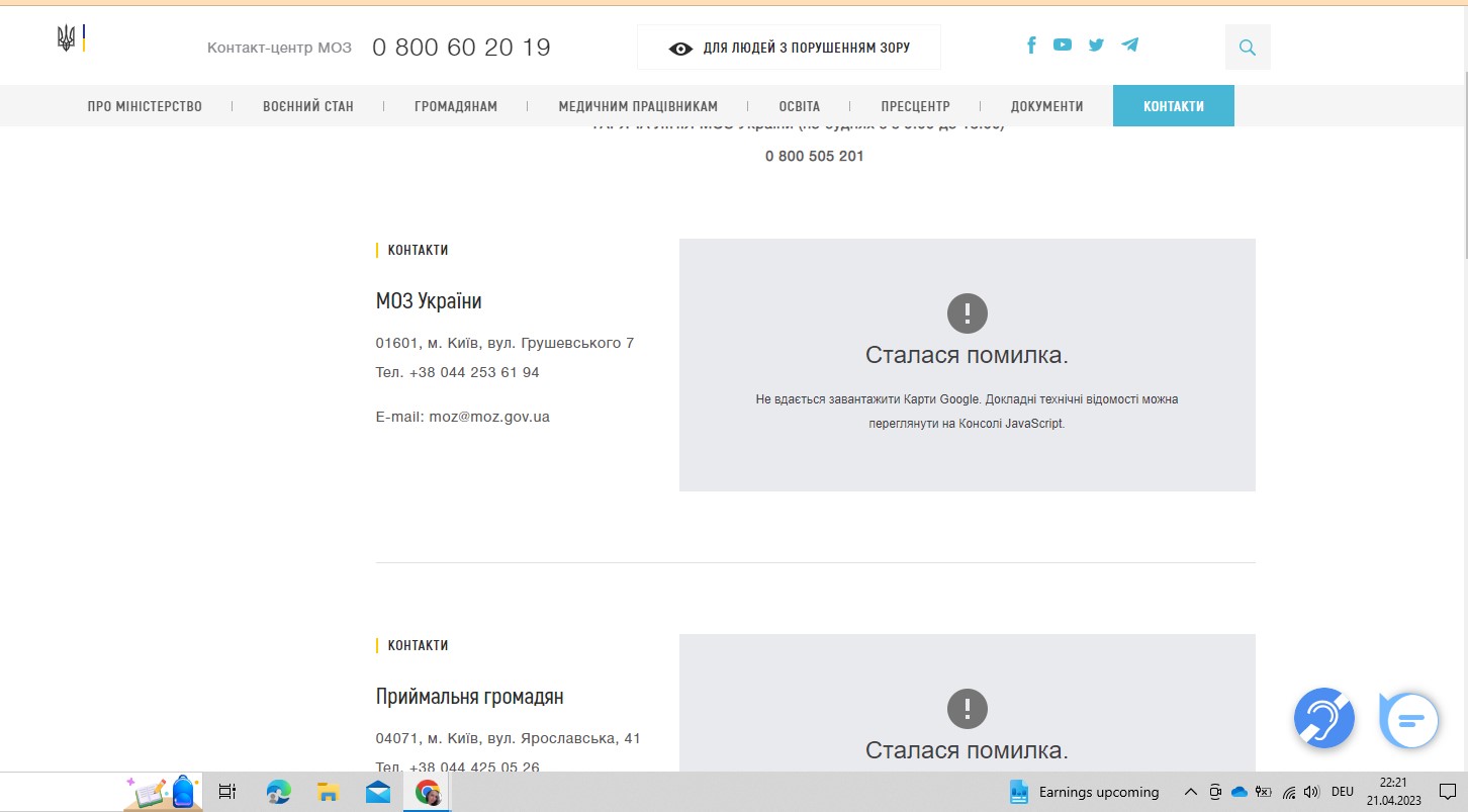 Фактичний результат : Не вдається завантажити карти Google