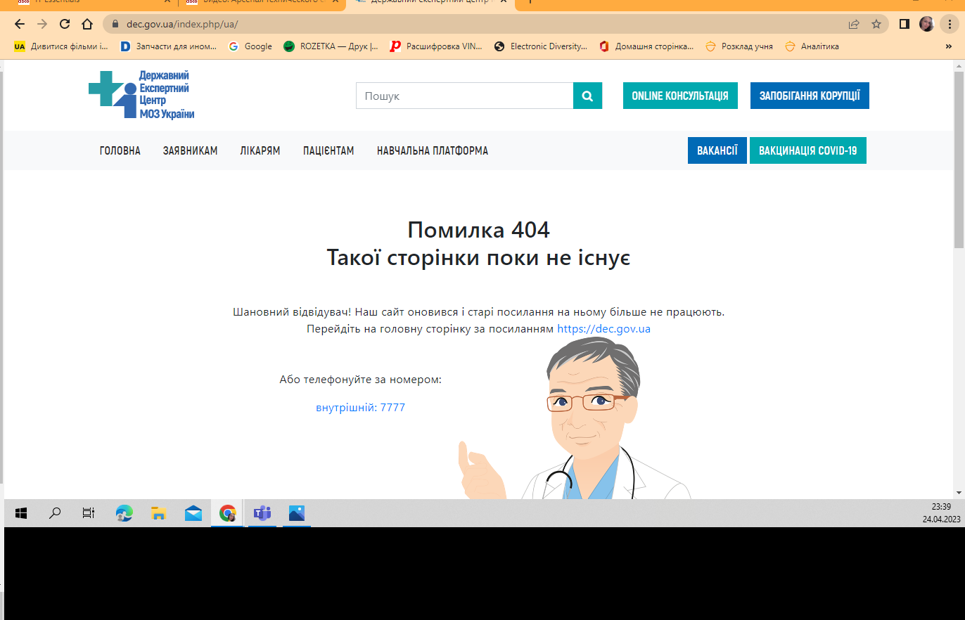 Помилка 404 при переході на сторінку "Державний Експертний Центр МОЗ України"