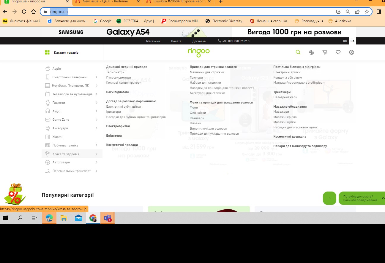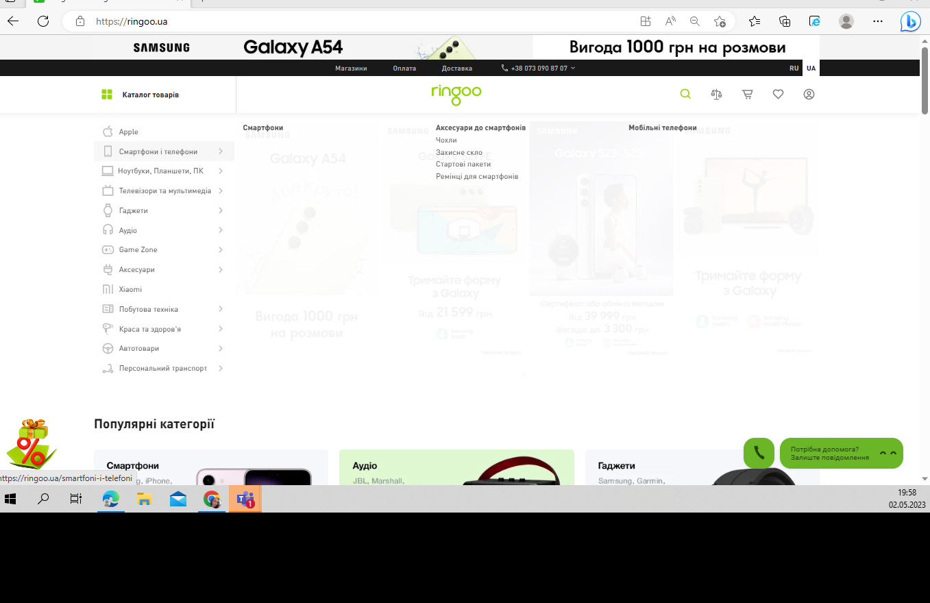 1)В браузері Microsoft Edge відкрити сайт https://ringoo.ua/