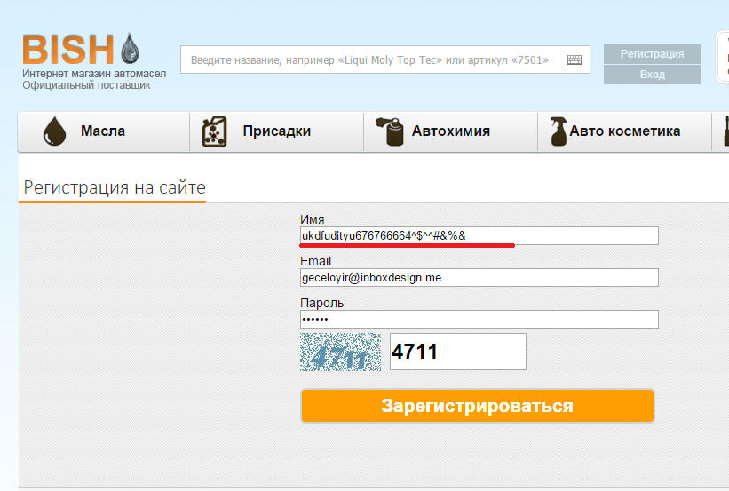 В поле Имя, при регистрации отсутствует проверка корректности вводимых символов
