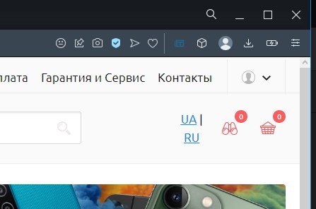 Виртуальная кнопка выбора языка UA находится над кнопкой RU