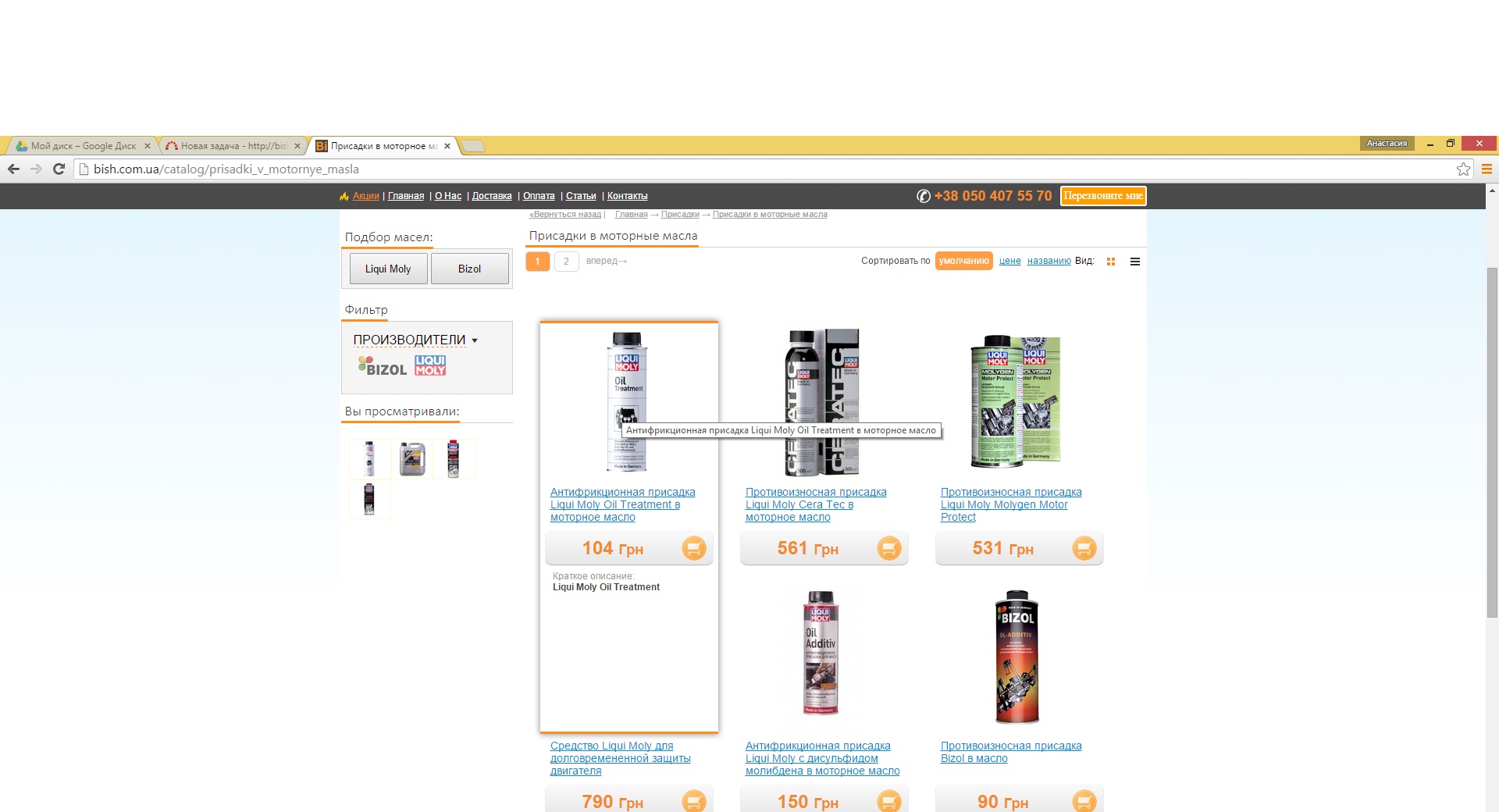 На сайте bish.com.ua в разделе "Присадки" во вкладке "Присадки в моторные масла" при наведении курсора на товар отсутствует краткое описание товара.