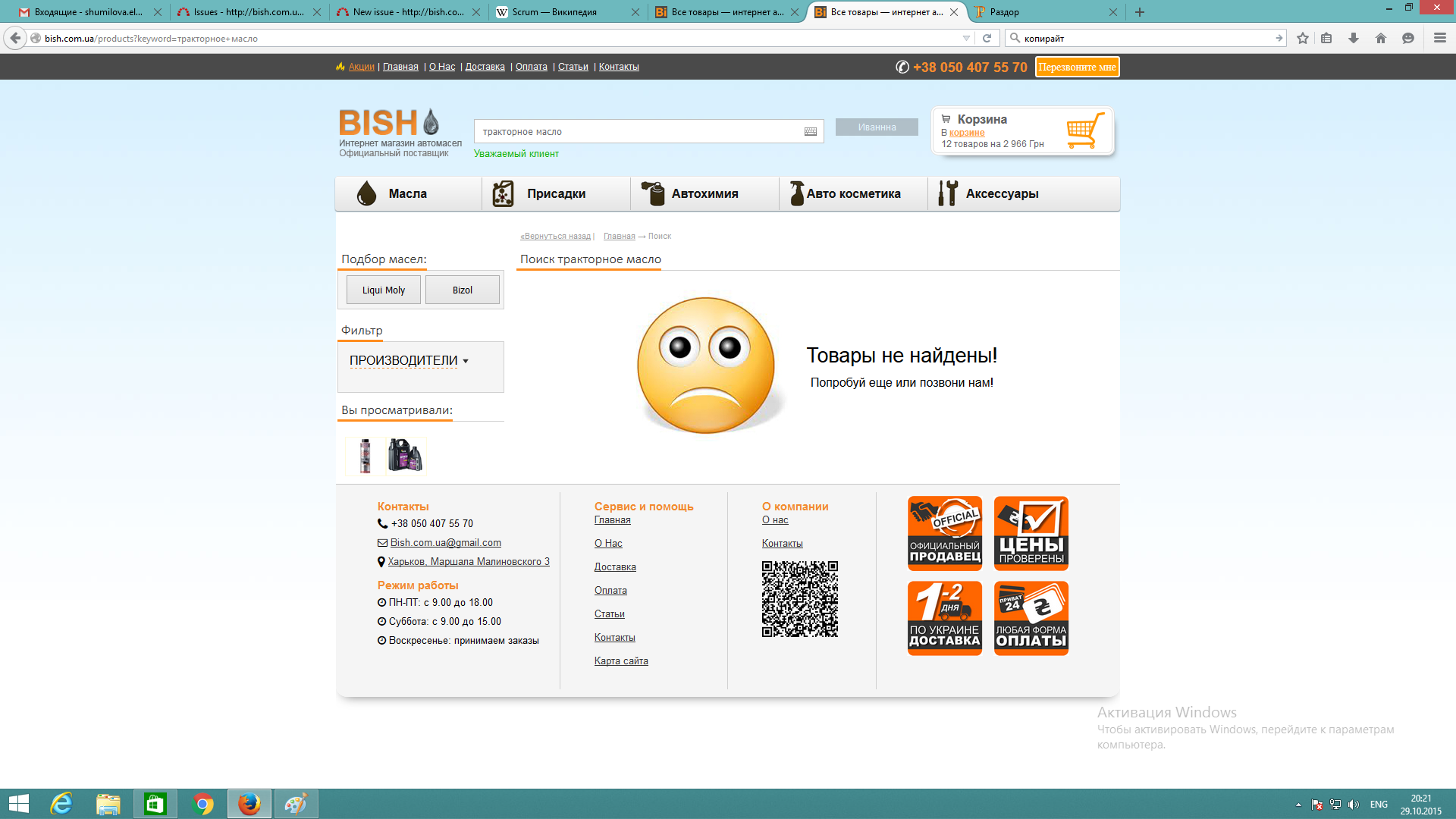 Раздел "Поиск" неэффективно работает. Не находит товары из раздела " Тракторное масло" .