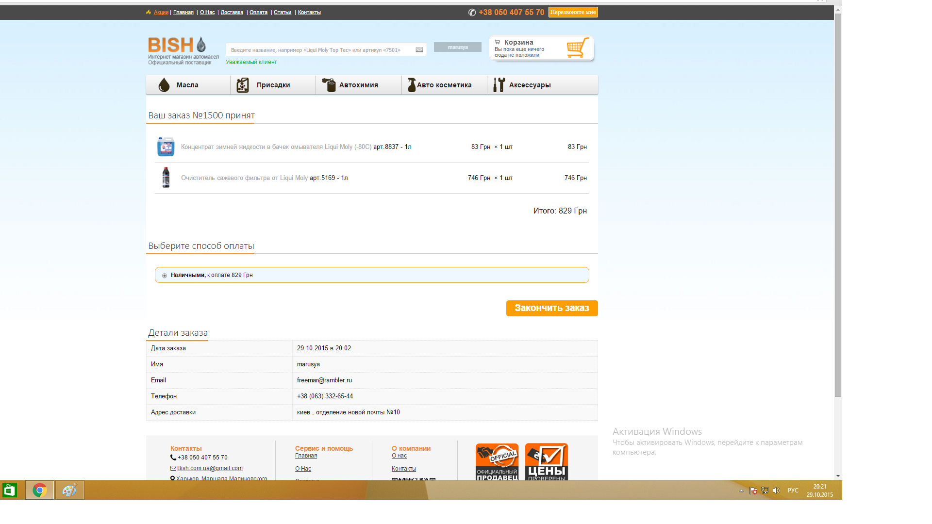 2. Выбрать товар, оформить заказ.