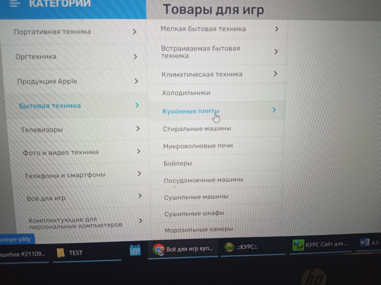 Функциональность не отображает перечень товаров в разделе "Кухонные плиты"в категории "Бытовая техника"