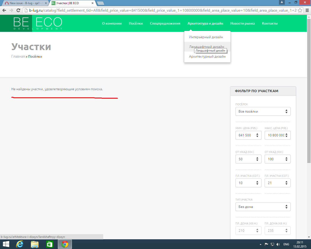 Не работает параметр поиска "Тип участка"