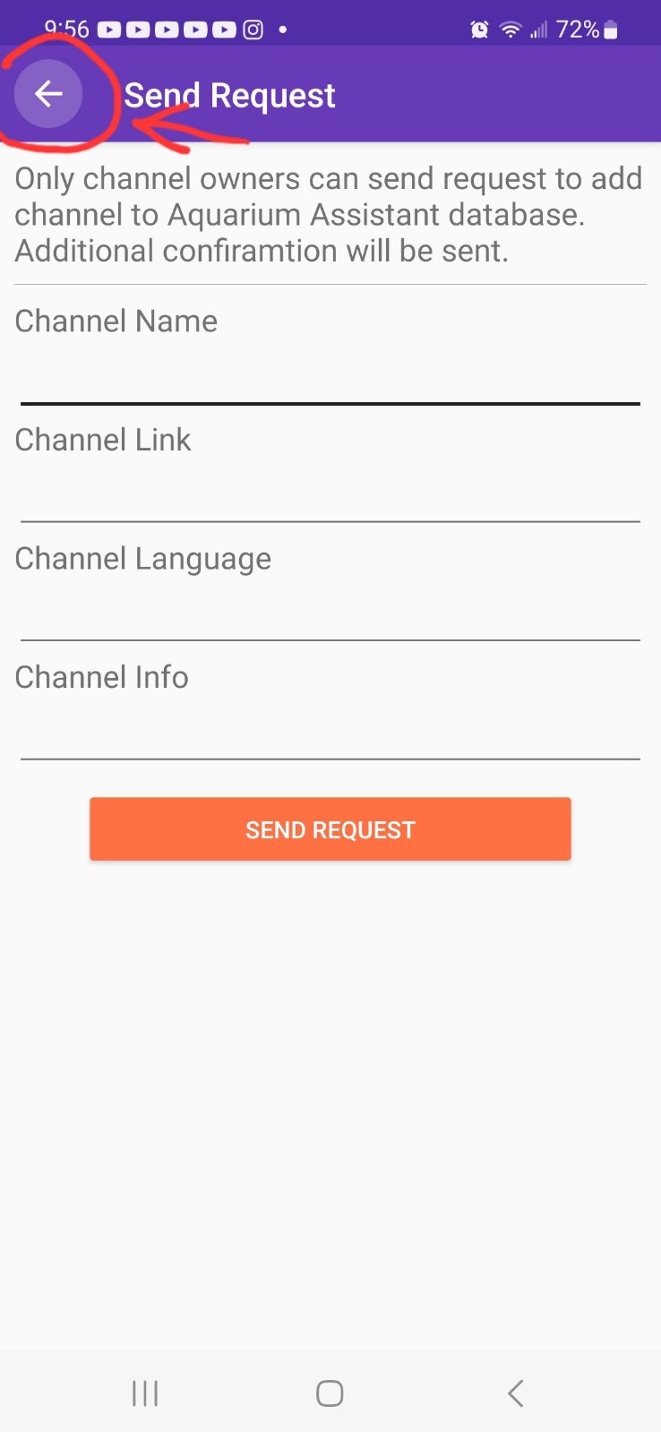 Аквариумный помощник. Нерабочая кнопка "назад" на странице "Send Request".