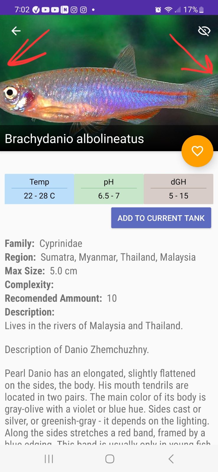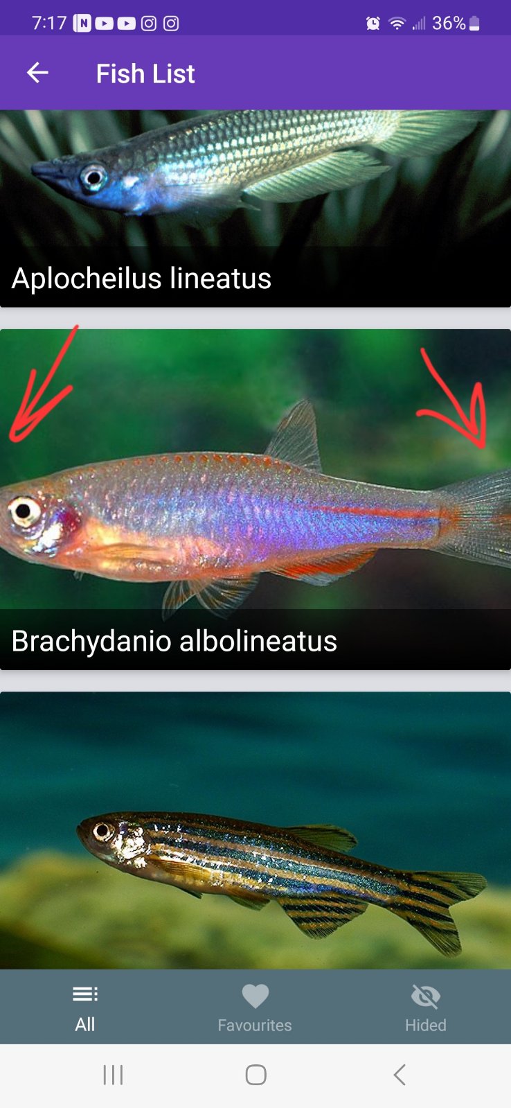6) На странице "Fish List" просматриваем и нажимаем на картинку рыбки "Brachydanio albolineatus.