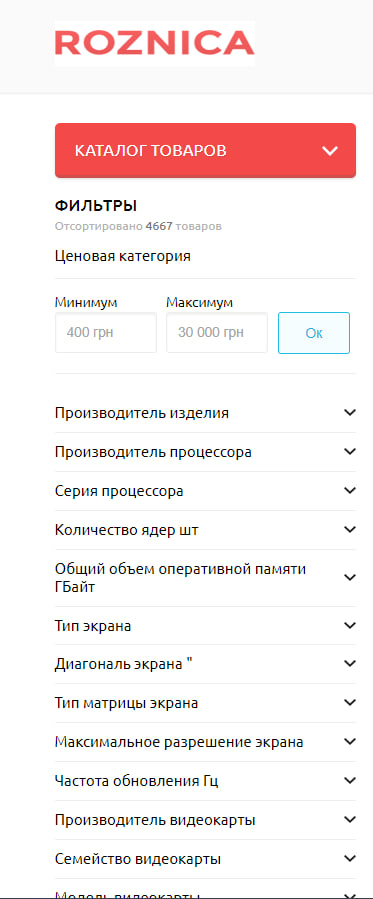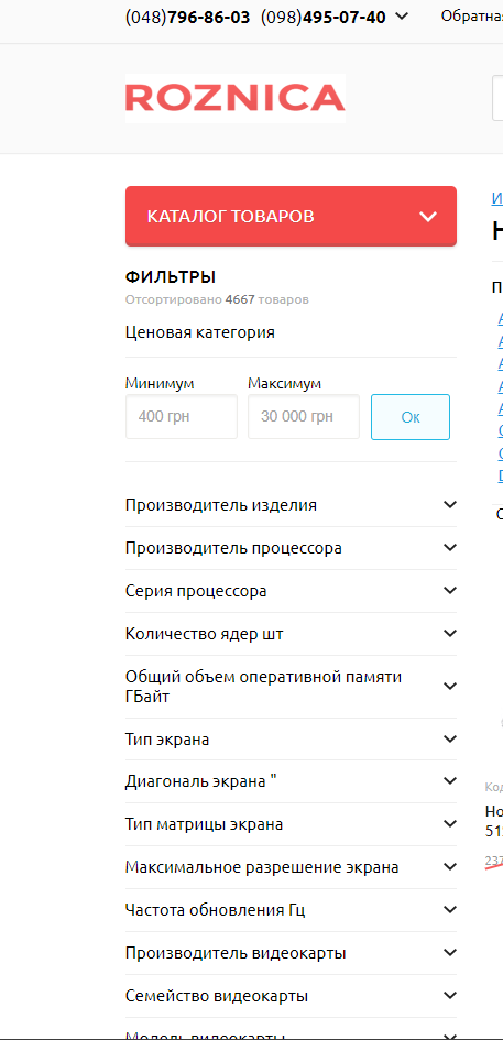 Фактический результат: В боковому меню "Діагональ екрана " має подвійні лапки в верху з одніеї сторони