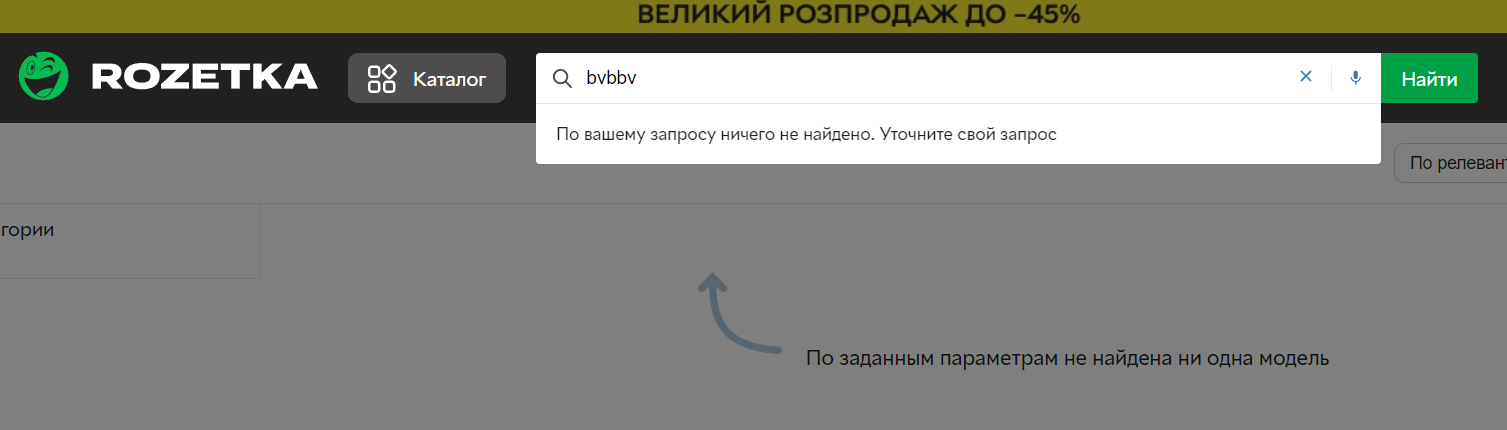 Некоректний результат товарів в "Строкі пошуку" при вводі неіснуючого товару