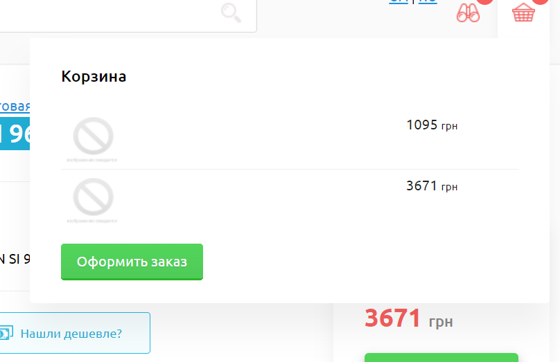 В меню "Корзина" отсутствует фото и название товара