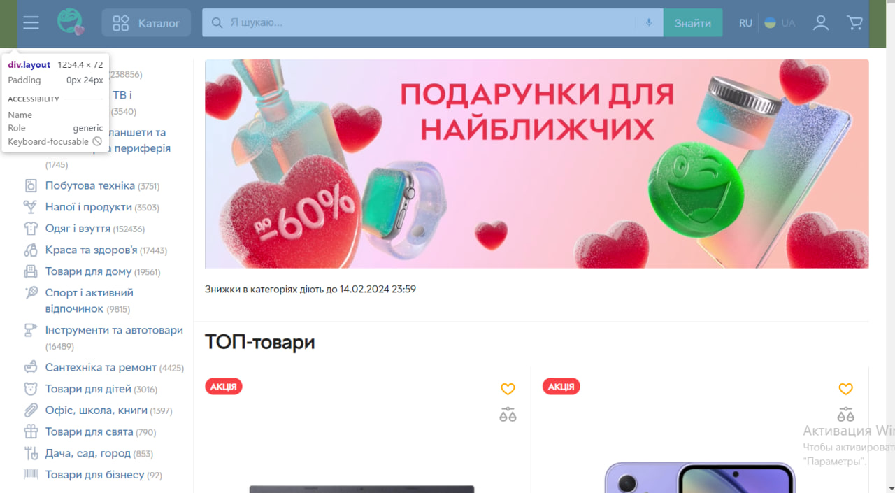 Между логототипом и поисковой строкой элемент "Каталог" пропадает при изменении масштаба страницы. При этом на мобтильных версиях его вовсе нет.