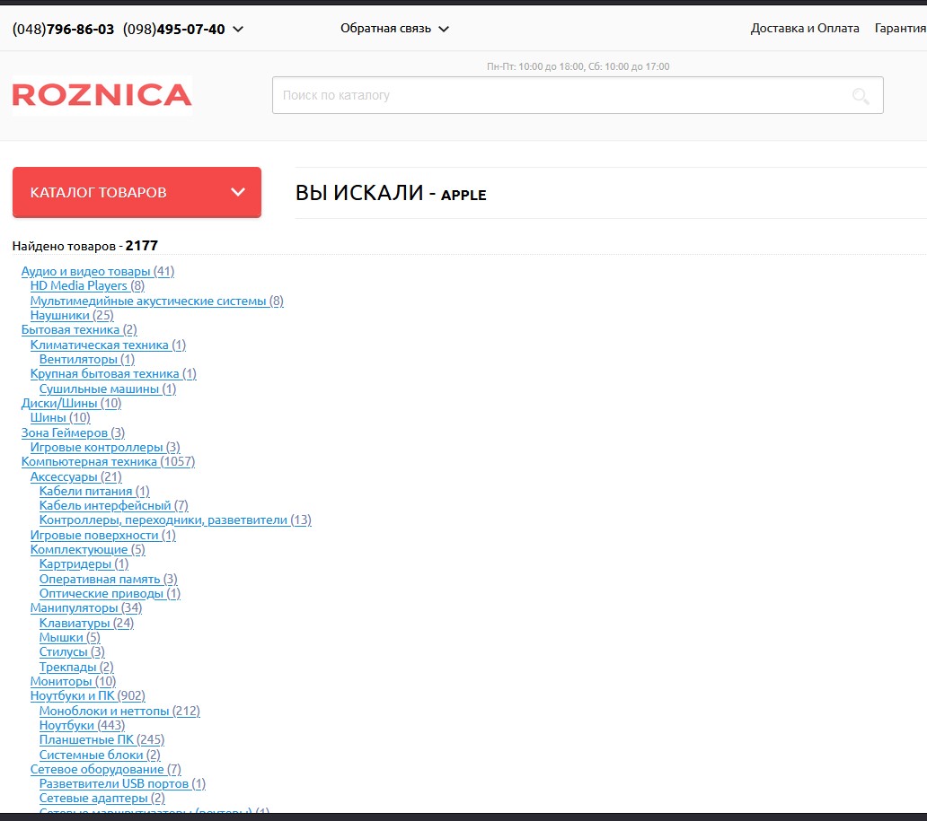 Ожидаемый результат: при поиске товара, товар должен отобразится на странице