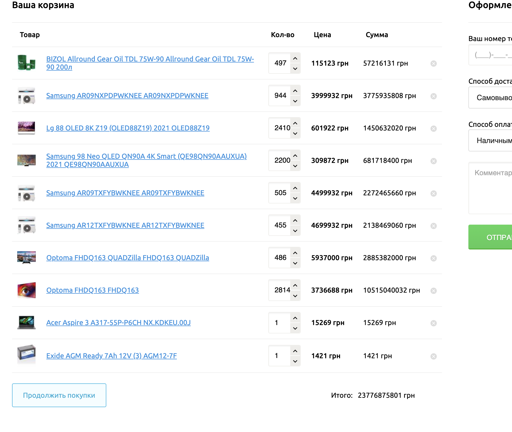 Корзина: Ввод количества товаров с клавиатури не визивает перерасчет стоимости заказа
