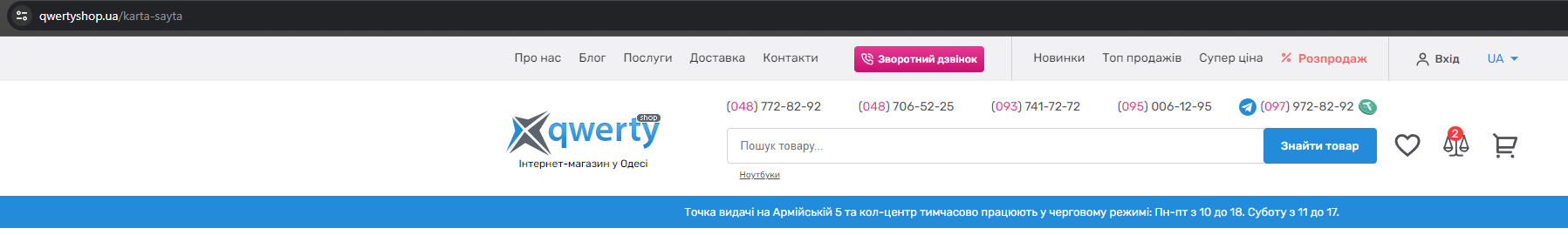 Фактический результат: ссылка будет выглядеть как "qwertyshop.ua/karta-sayta"