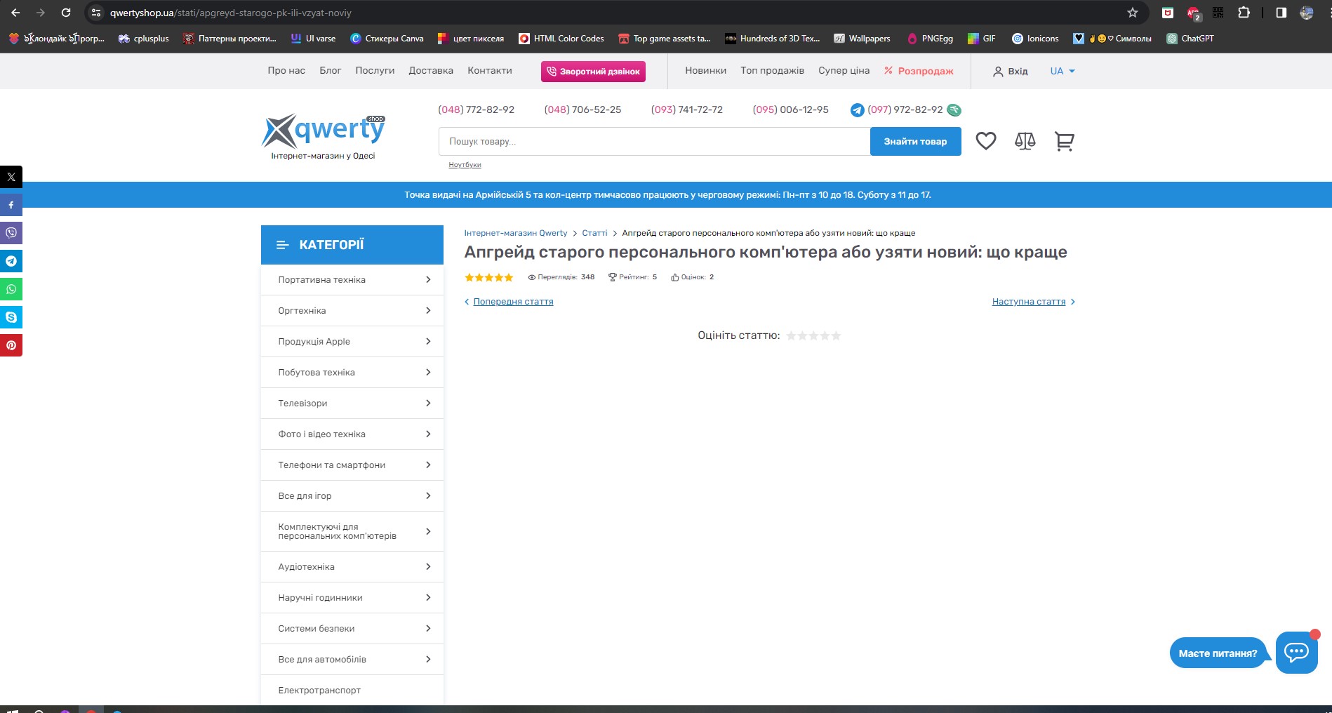Отсутствует "Апгрейд старого персонального комп'ютера або узяти новий: що краще" неотображается