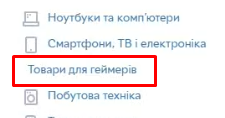Фактический результат: Иконка категории "Товары для геймеров" не отображается