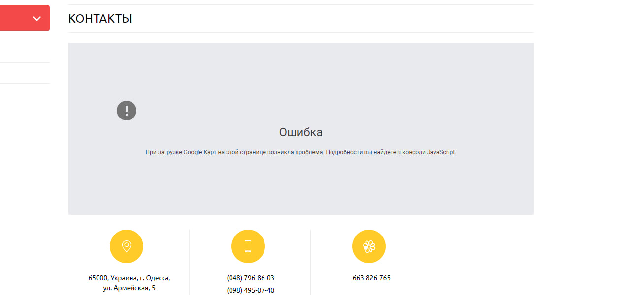 Ошибка в работе карты Google на странице контактов на сайте Roznica