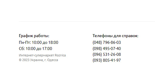 Номера телефонов в футере не активны для нажатия на сайте Roznica