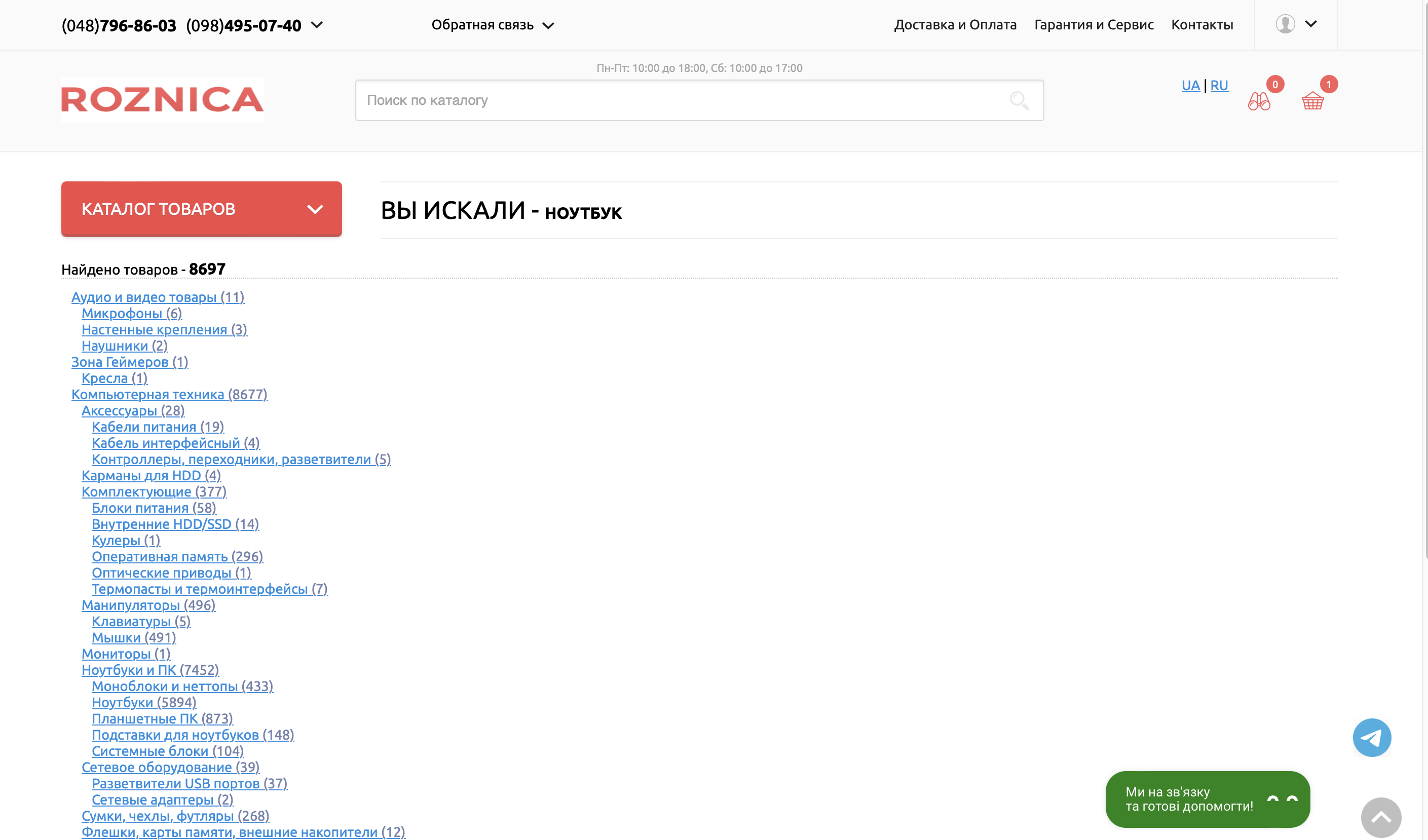 1) Перейти на главную страницу сайта "www.roznica.com.ua".