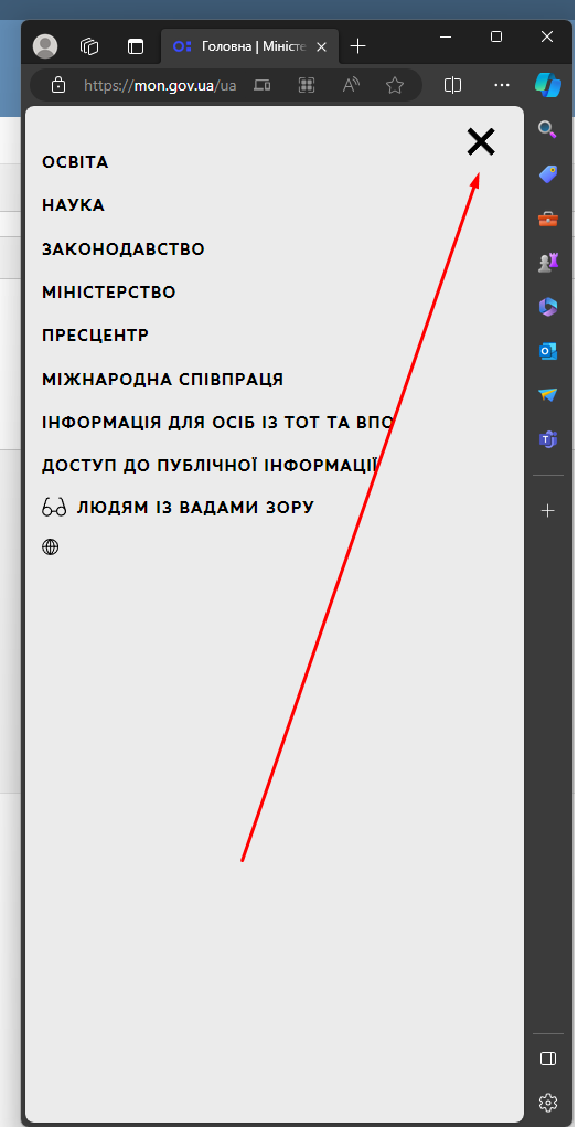 Ожидаемый результат: При нажатии на кнопку закрытия "Х" у нас будет закрываться "Бургер меню"