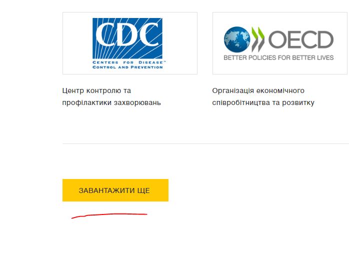 - Перейти на страницу "Партнери" на сайте Минздрава Украины и попытаться использовать кнопку "Завантажити ще".