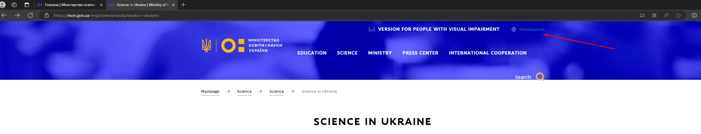 1) Перейти на страницу https://mon.gov.ua/eng/science/nauka/nauka-v-ukrayini