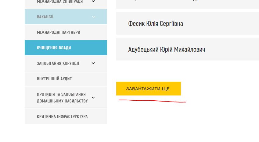 Кнопка "Завантажити ще" не работает на странице "Очищення влади". https://moz.gov.ua/ochischennja-vlady