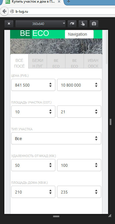 1. Открываем страницу http://b-lug.ru/ на устройстве с разрешением экрана 360х640