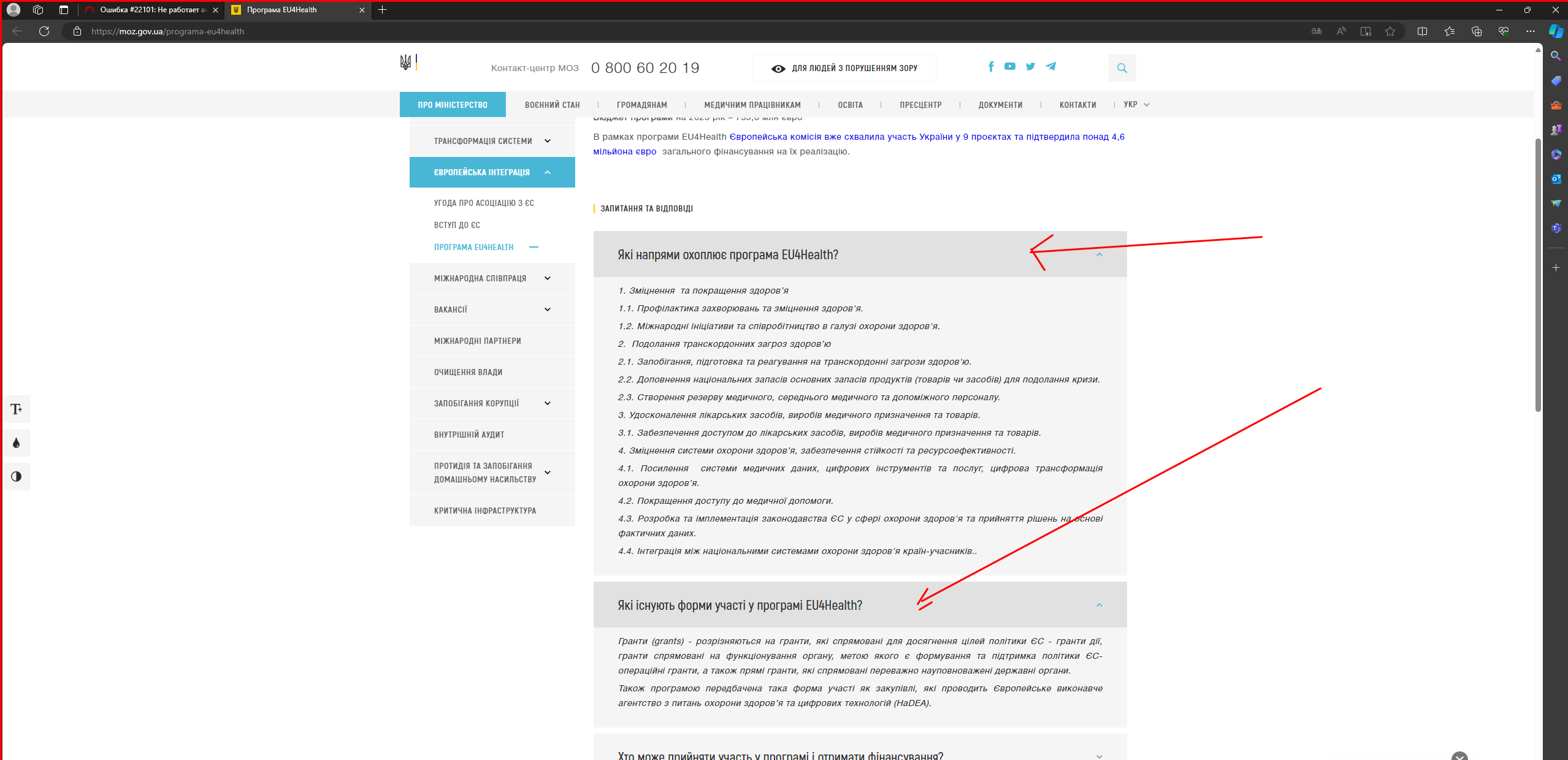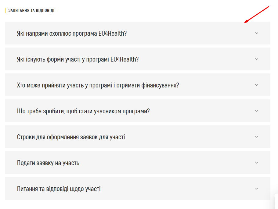 Не работает аккордеон на странице "ПРОГРАМА EU4HEALTH"