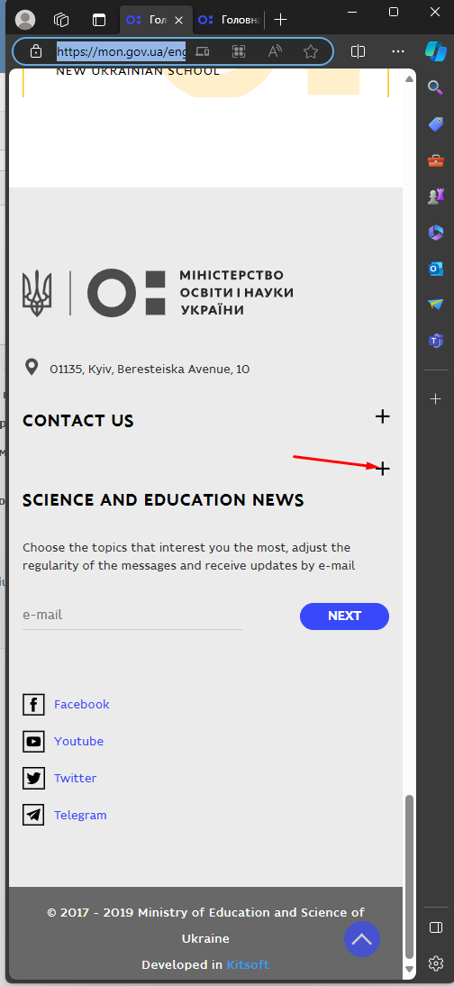 1) Открыть сайт https://mon.gov.ua/eng
