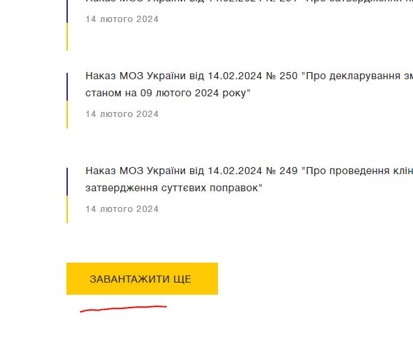 Кнопка "Завантажити ще" не работает на странице https://moz.gov.ua/dokumenti-vs