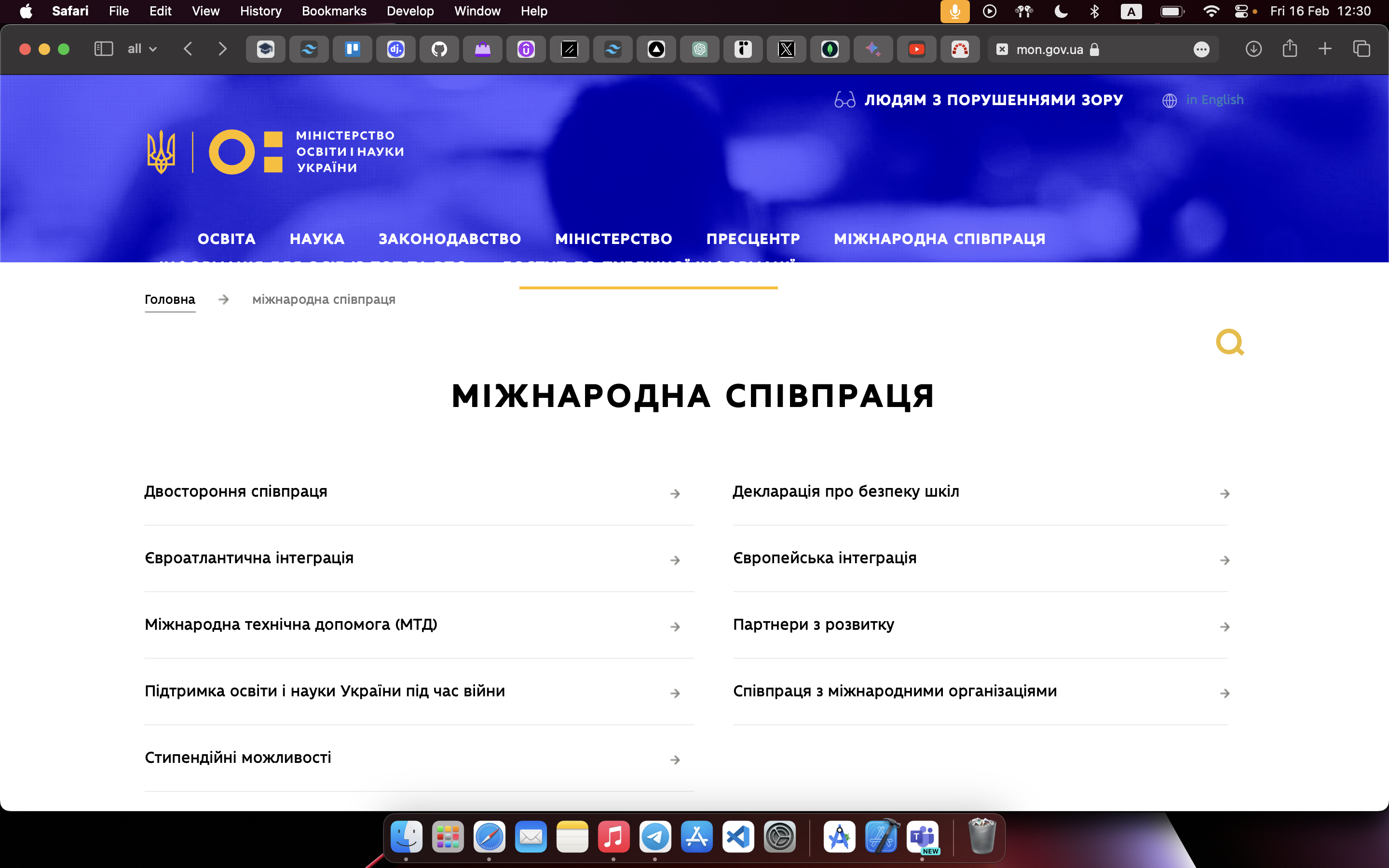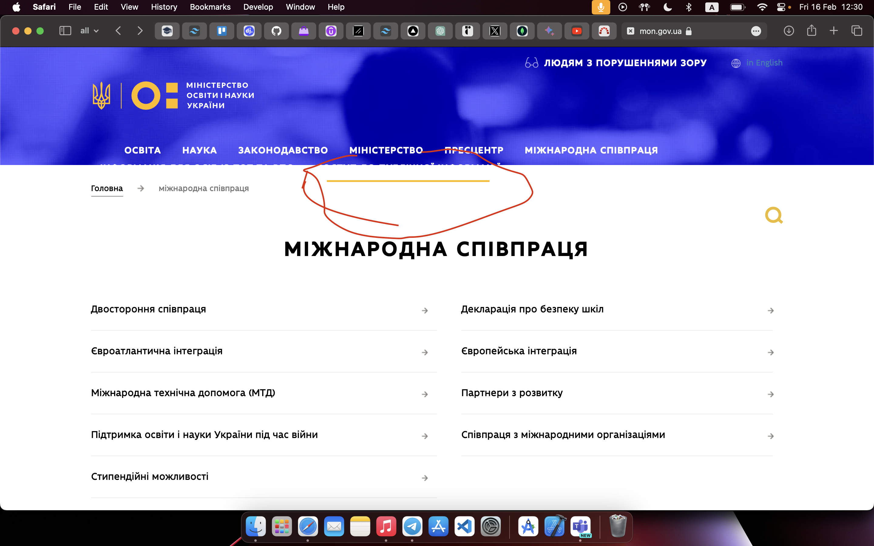 1) Открыть главную страницу сайта https://mon.gov.ua/ua/tag/mizhnarodna-spivpratsya