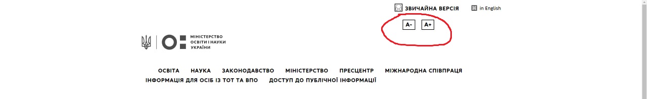 2) Переключить режим отображения "Людям з порушенням зору"