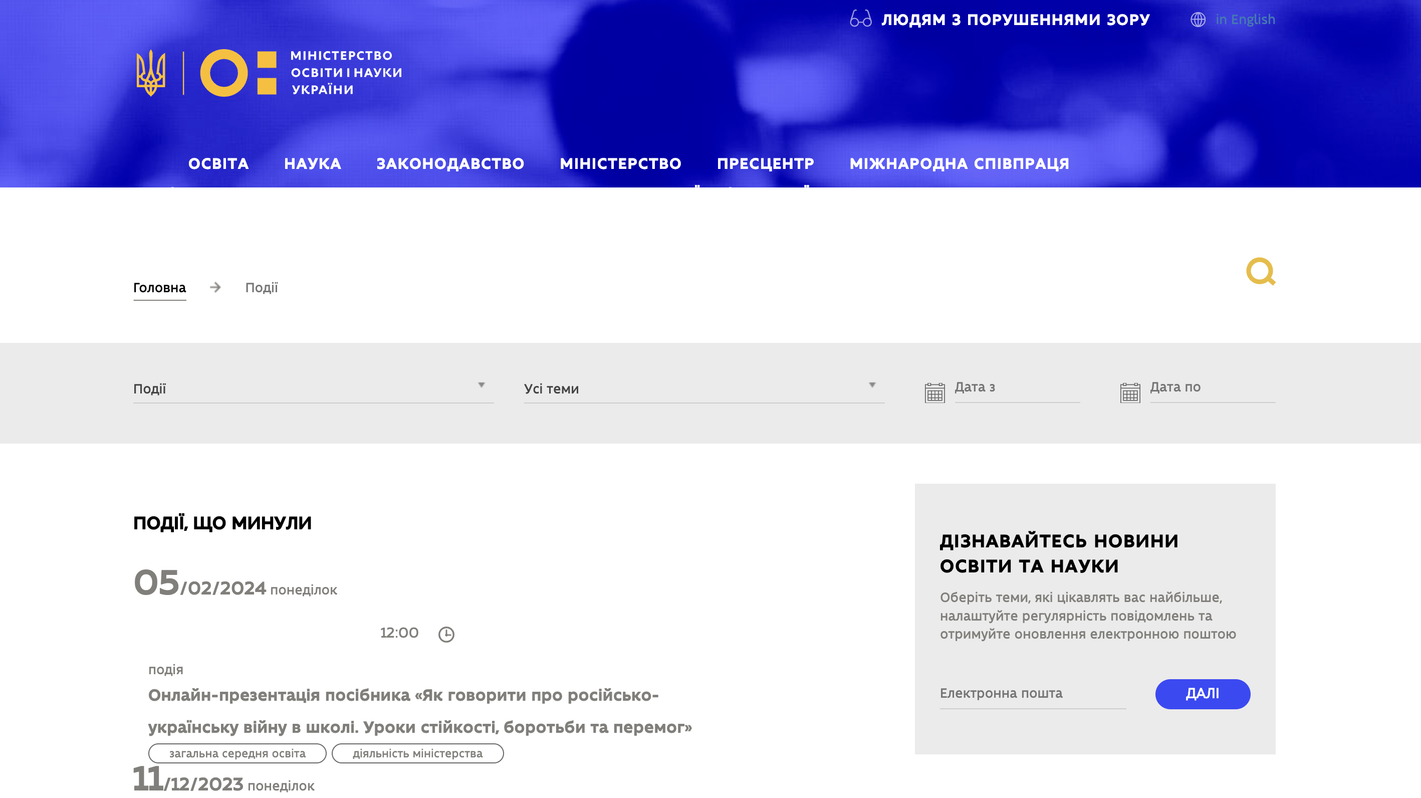 Открить https://mon.gov.ua/ua/events
