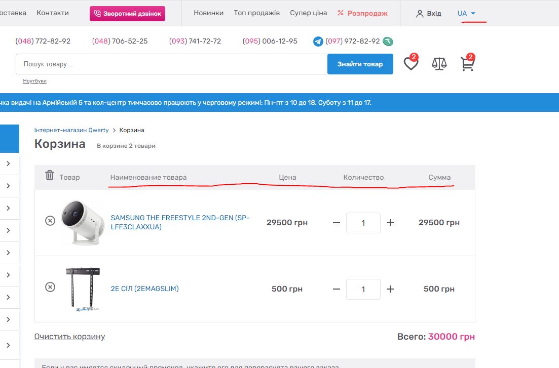 Перейдите на страницу https://qwertyshop.ua/cart.