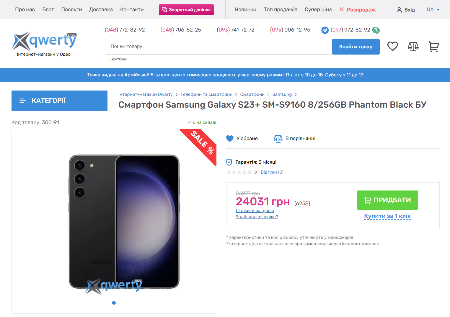 Открыть страницу https://qwertyshop.ua/smartfon-samsung-galaxy-s23-sm-s9160-8-256gb-phantom-black-300191