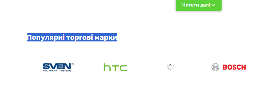 2) Промотать вниз до "Популярні торгові марки"