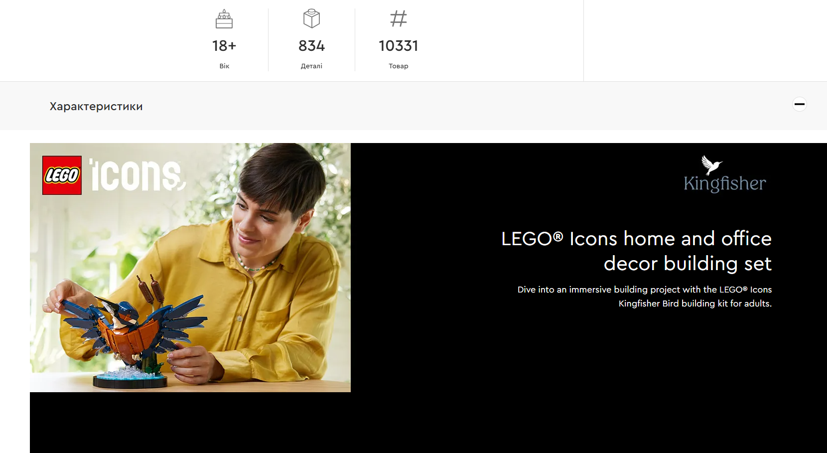 1) Открыть страницу https://www.lego.com/uk-ua/product/kingfisher-bird-10331