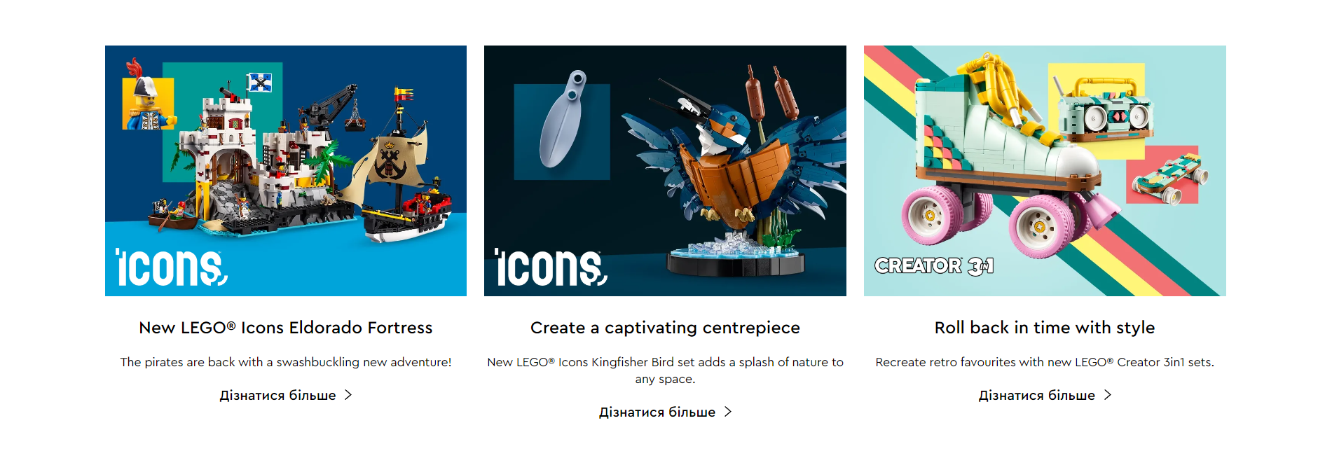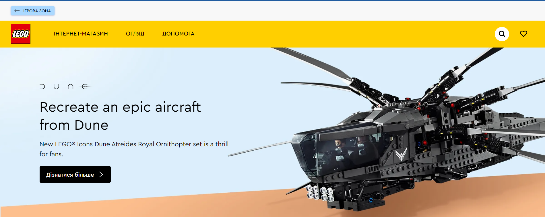 Частично отсутствует украинская локализация на сайте lego.com, например, баннер с актуальным продуктом и заголовки статей не переводятся.