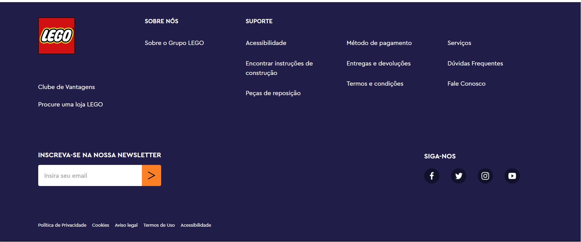 После переключения на португальскую локализацию на сайте lego.com нет возможности переключиться на панель с выбором другого языка, расположенную в футере сайте. В случае с другими языками, например, украинской, эстонской или немецкой локализацией, данная кнопка присутствует всё в том же месте, а в португальской локализации она пропадает.