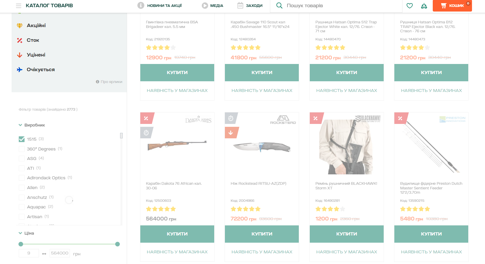 2.На голвній сторінці в боковому меню обираємо розділ "Розпродаж".
