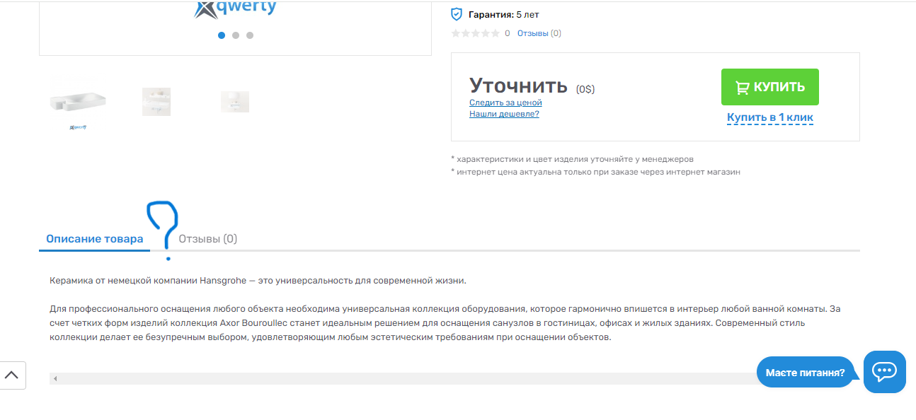 7) Открыть страницу товара "Раковина "Axor Bouroullec" настенная"