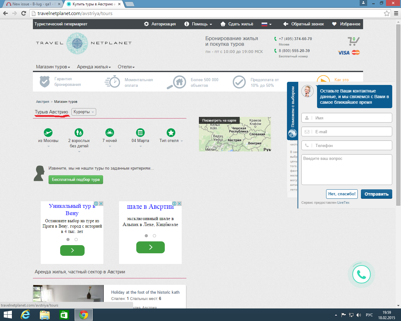 Фактический результат: Отсутствие пробела в словосочетании "Туры в Австрию"