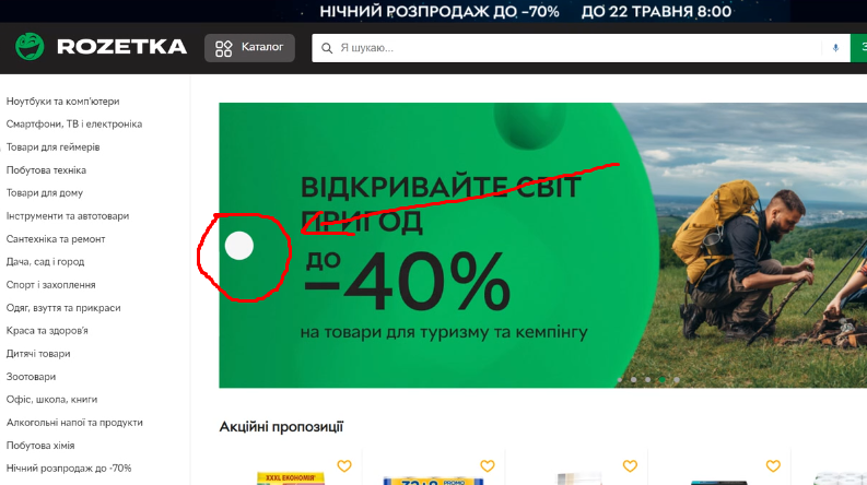 Фактический результат: Левой стрелки перелистывания предложений рекламы нет.