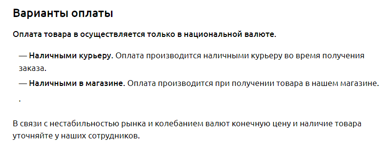 Лишняя точка в разделе Варианты оплаты