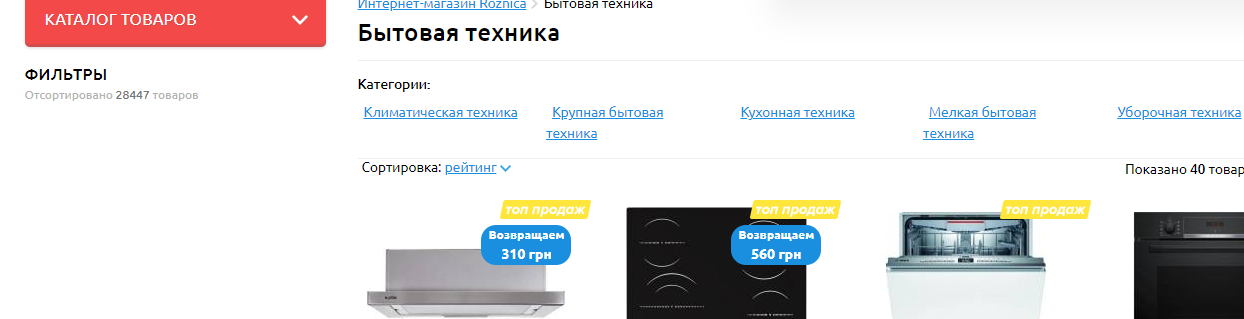 3)По левоу сторону от списка предложенных товаров виден заголовок "фильтры", который не иммет ни контекста ни информационной ценности.